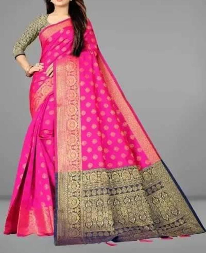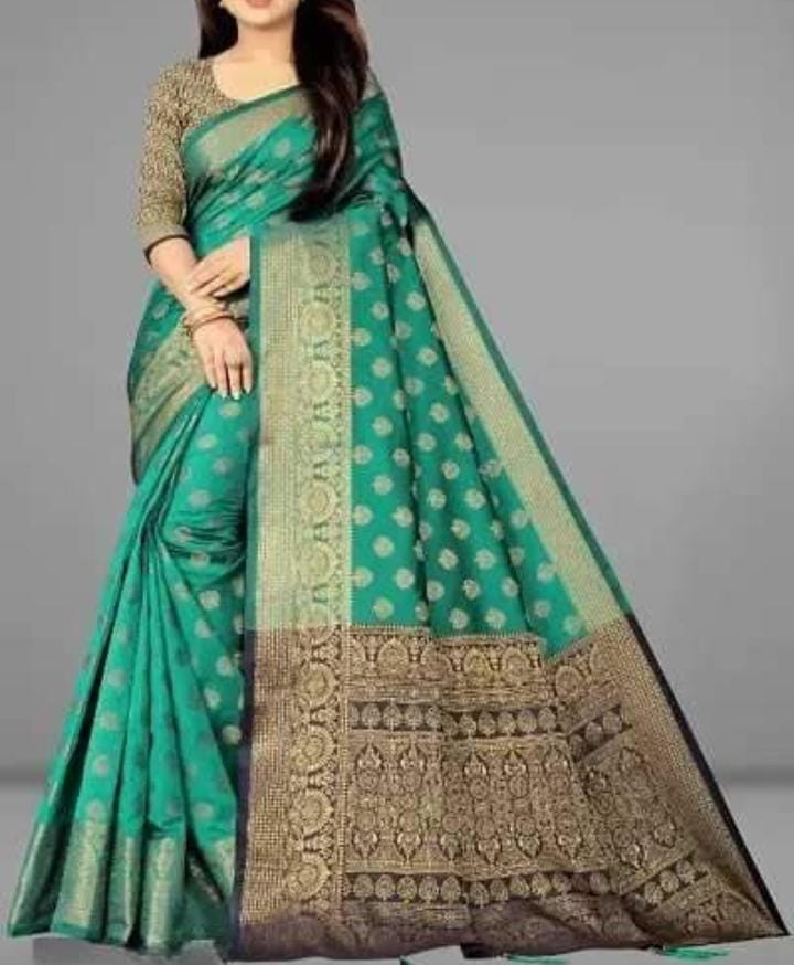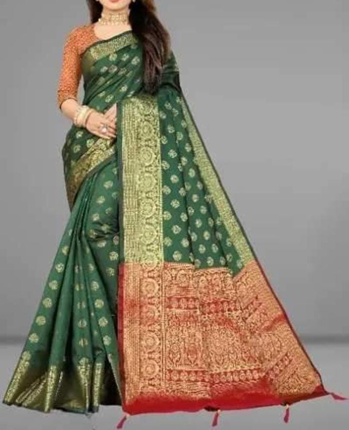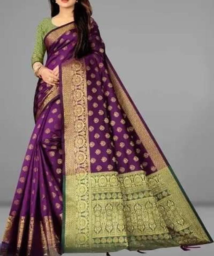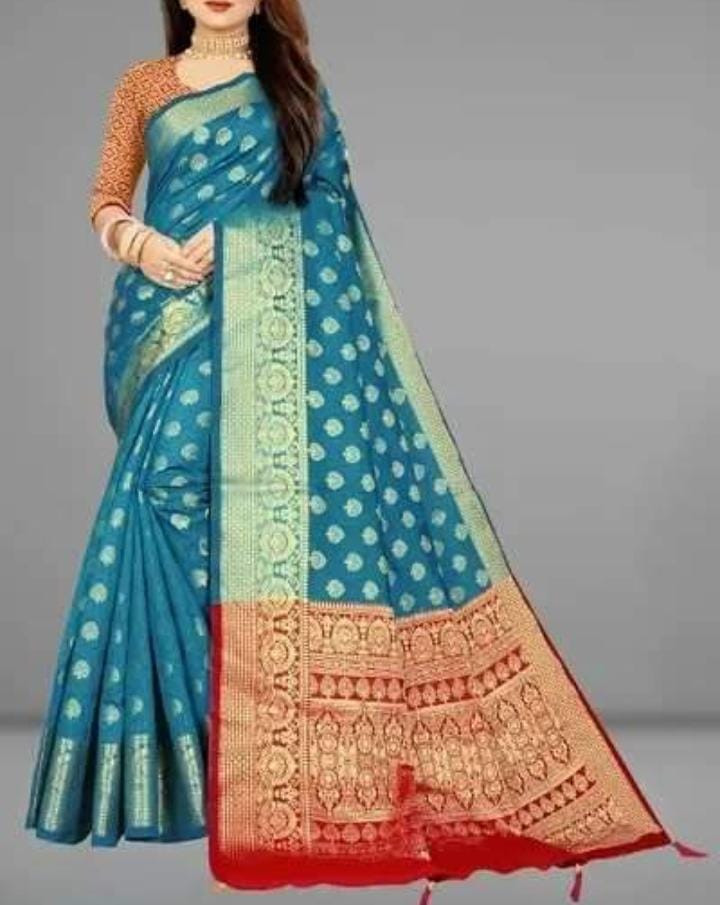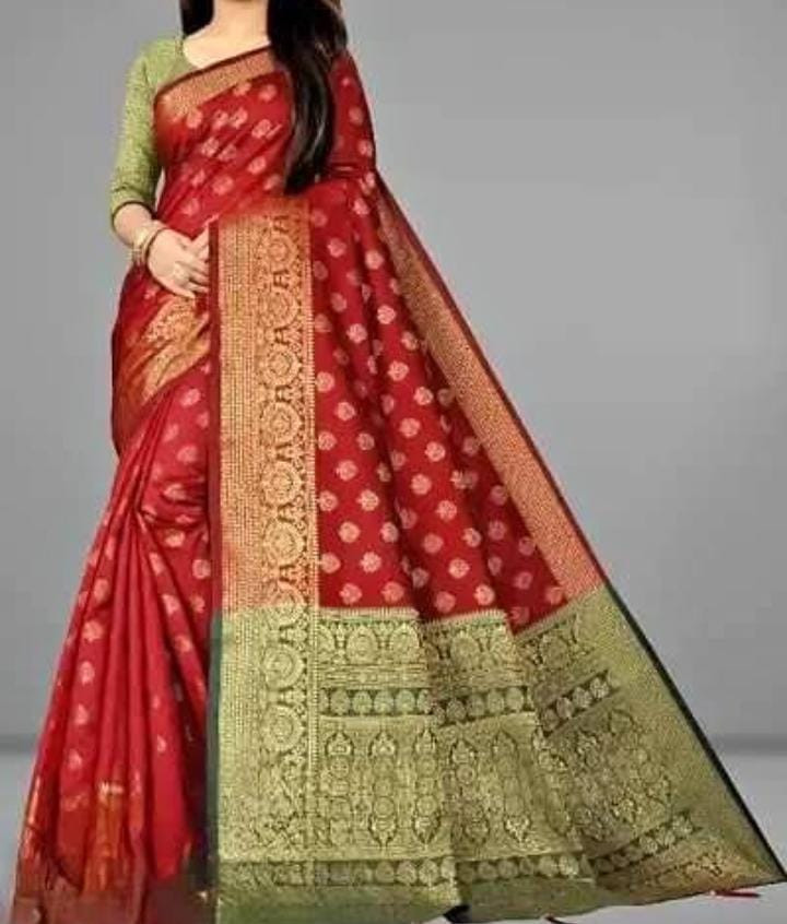 Banaras Brocade Sarees are made of finely woven silk and decorated with intricate designs using zari; this ornamentation is what makes the sarees heavy. Their special characteristics are Mughal-inspired designs/elements such as intricate floral and foliate motifs, such as kalga and bel. Country Of Origin India .