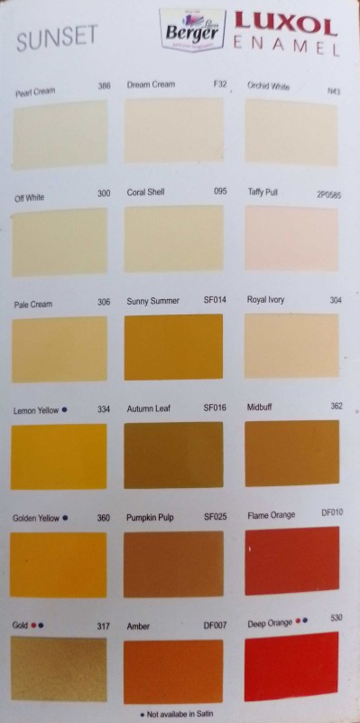 Berger Luxol Satin Enamel is a solvent based paint that is washable and long lasting. Satin finish paint can be used in areas like kitchens, balconies, etc. Country Of Origin India.