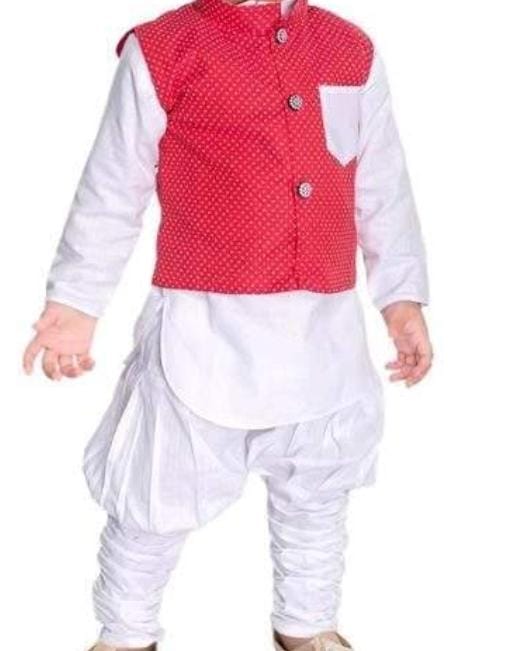 Boys Kurta set. Febric: Cotton, Sleeve:Long Sleeve, Bottom Type- Pyjamas. Boys Cotton kurta Baloon pant With Beautiful Jacket. Hand wash only, Wash Seperately Use cold Water With Mild Detergent.