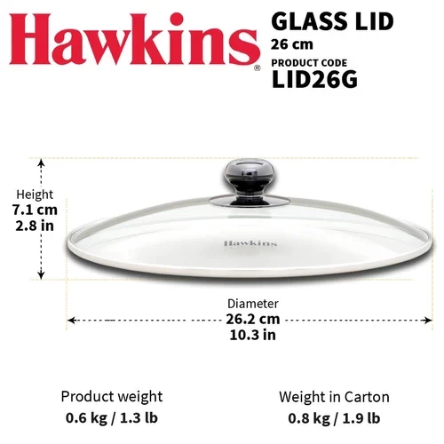 Hawkins 22/24/26 cm Glass Lid, Toughened Glass Lid with Stainless Steel Rim, Pan Lid, Transparent