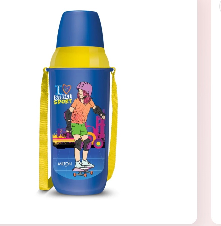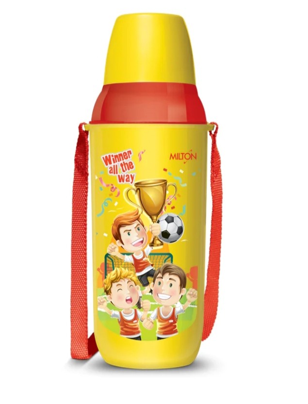 The sturdy, colourful Milton Kool Kid insulated, plastic water bottles keep liquids cold for hours. Comes with a built-in Flip'n'Sip spout on the inner lid, Kool Kid is an insulated bottle, for small kids, to keep drinks cold for hours. Its has a dual lid feature, the inner lid is equipped with a spout while the ... Country Of Origin India.