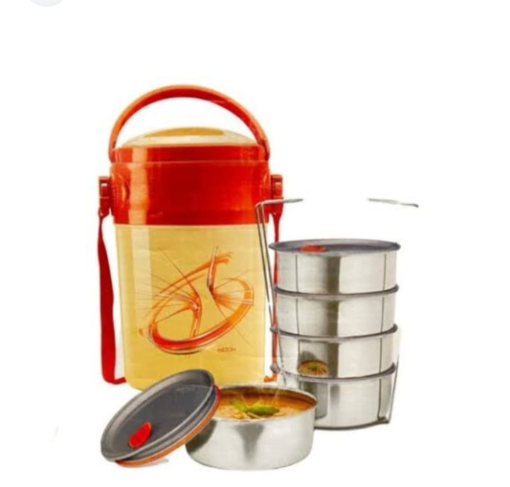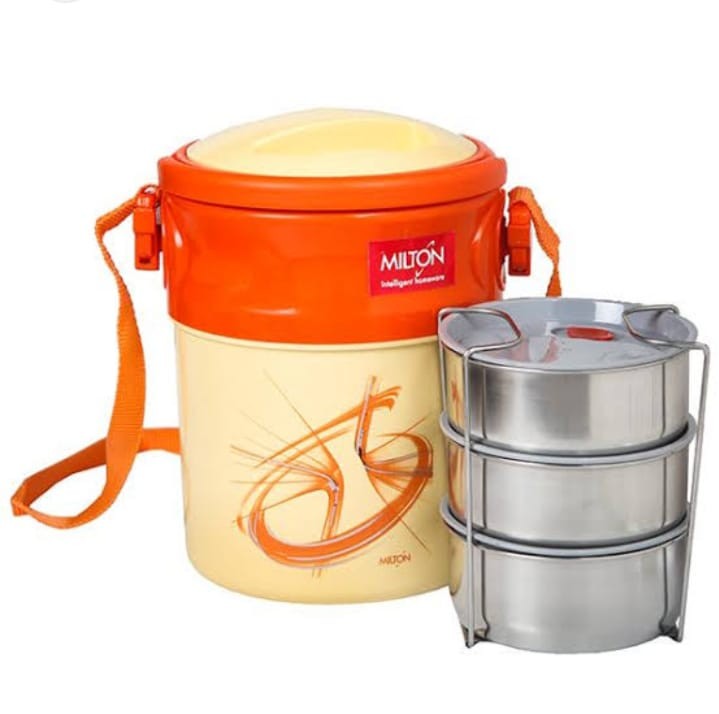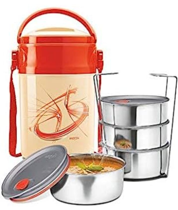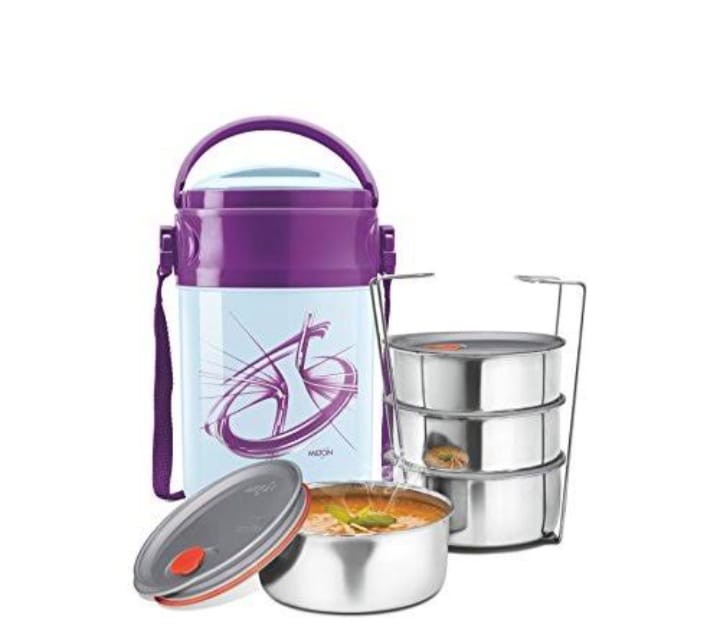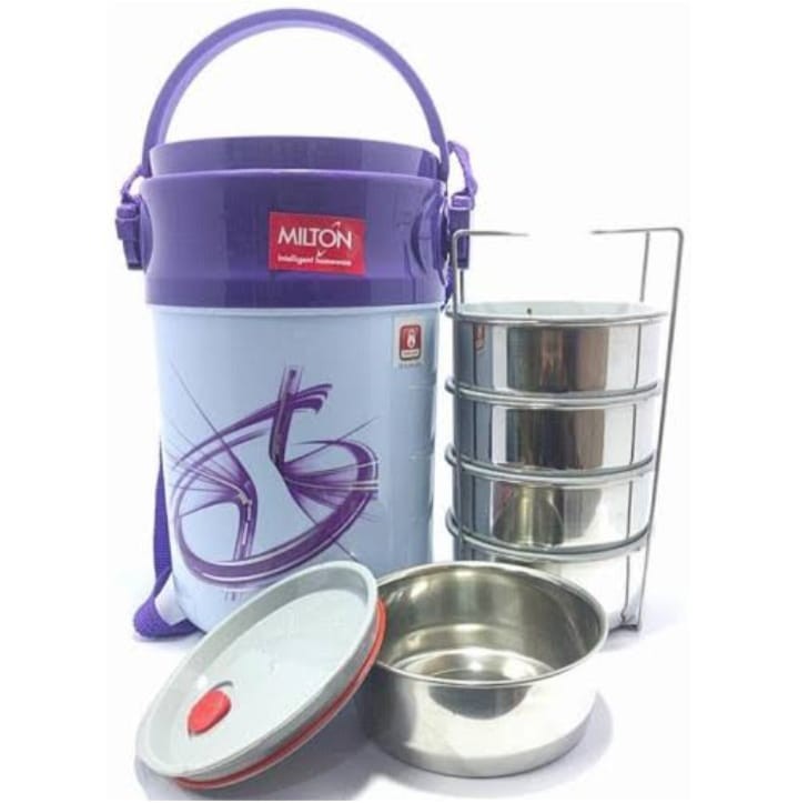Milton's Odyssey double-walled Tiffin Towers are designed to keep your food hot and fresh-tasting for hours. Featuring 3 tiers of stainless steel inner tiffin containers and an additional papad tray and easy to handle. Country Of Origin India.