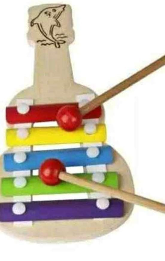 Let your child's imagination and creativity fly while they learn about the world around them. Teach your child about different colors using the six color-coded keys on this xylophone. Let your children go on a journey by playing familiar tunes such as "Twinkle, Twinkle, Little Star". Introduce colors by showing them what a color looks like on the keys. This toy is not only great for kids to explore and learn more about — Musical Sound Instrument Toy made for kids, with sound of Guitar, wooden toy xylophone. — Does your little one have musical talents? Introduce them to the world of percussion with this xylophone guitar toy! It has a natural and soothing sound, and is made from eco-friendly materials. With this toy, your child will be developing skills in creativity, communication, and emotional intelligence. — Xylophone is a musical toy with crisp and clear sound. It's a perfect first instrument for babies to learn music. Kids can use this toy as a musical instrument and enjoy the fun of making music.