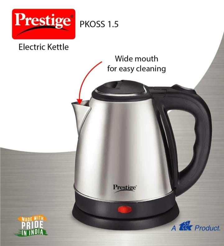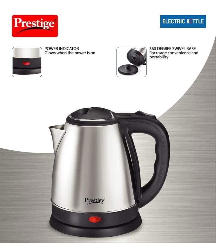 This prestige Electric Kettle wide mouth for easy cleaning. Power Indicator glows when tha power is on. 360degree Swivel Base for usage convenience and portability.