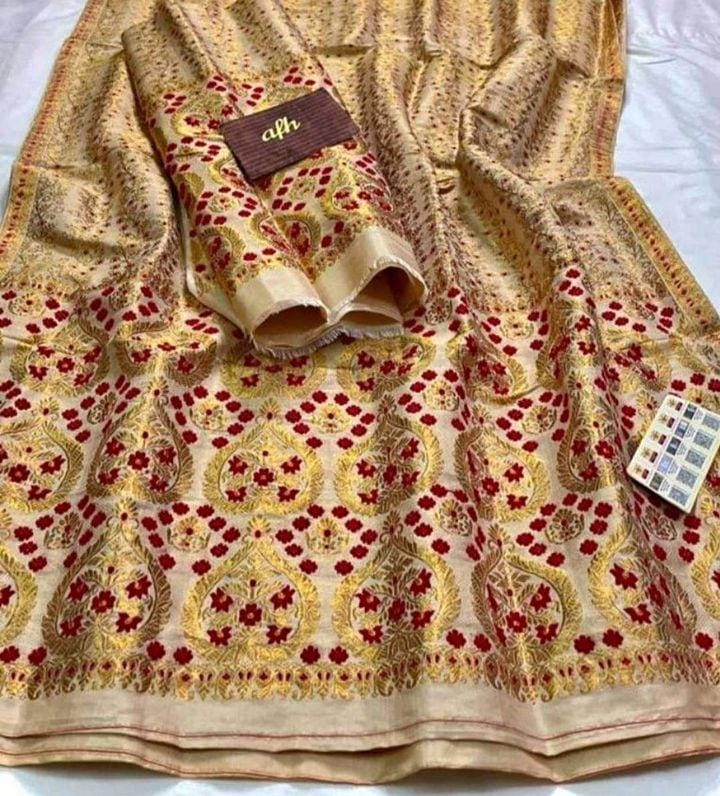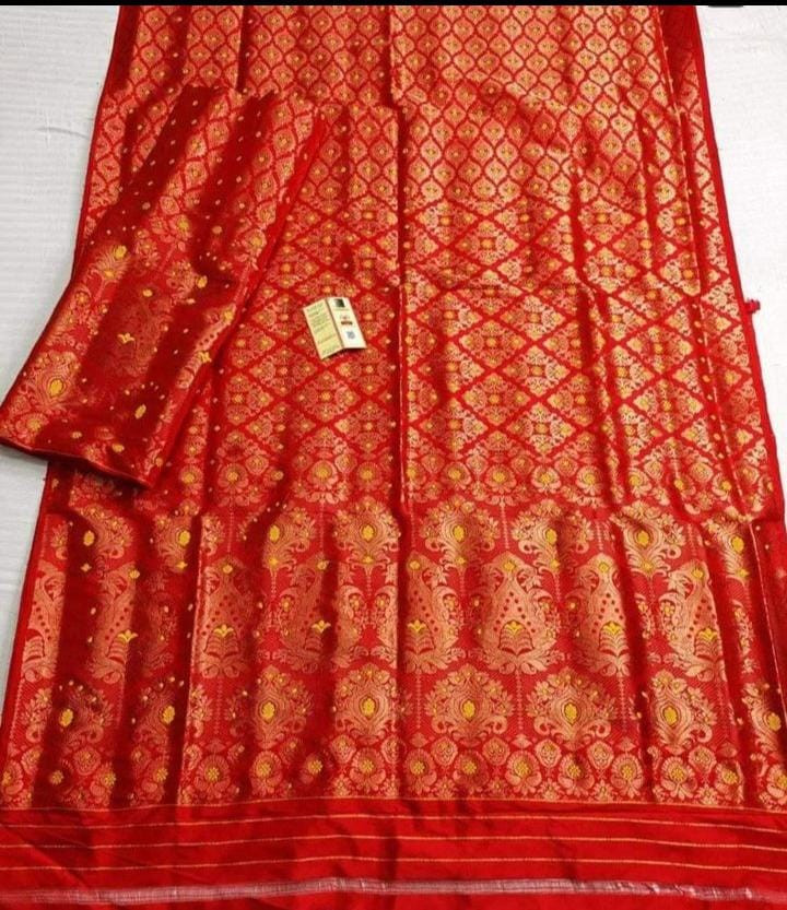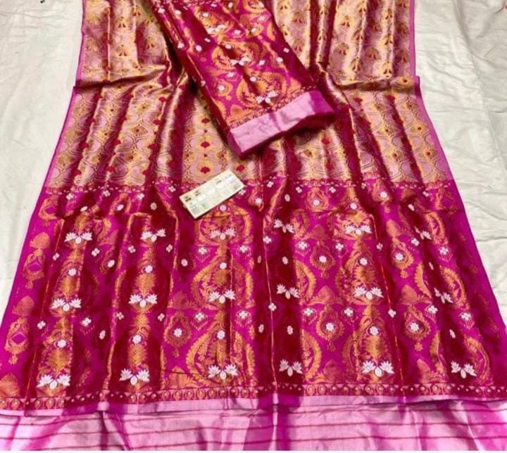 This item is NOT a Saree. It\"s an Assamese Traditional Wear called Mekhela Chador which comes in two separate pieces - 1) Mekhla : the bottom portion, draped from the waist downwards is called the mekhla. 2) Chadar : The top portion of the two-piece dress, called the Sador , is a long length of cloth that has one end tucked into the upper portion of the mekhela and the rest draped over and around the rest of the body. Please follow instructions to extend the life of the fabric. Hand wash separately in cold water for the first time. Do not use bleach, scrub or soak for too long. Actual product colour may slightly vary from the colour on your screen due to resolution.