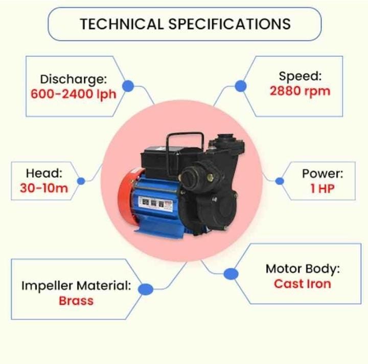 comes with a warranty of 1 year. With a discharge of 600-2400 LPH, this product can pump water up to 10-30 ...