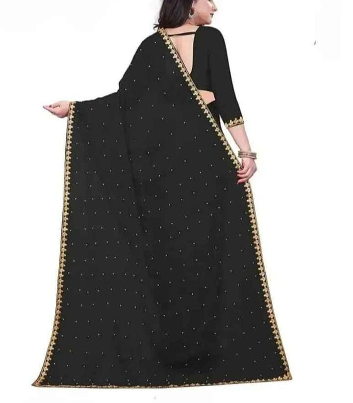 A sari (sometimes also saree or shari) is a women\"s garment from the Indian subcontinent, that consists of an un-stitched stretch of woven fabric arranged over the body as a robe, with one end attached to the waist, while the other end rests over one shoulder as a stole (shawl), sometimes baring a part of the midriff. Country Of Origin India.