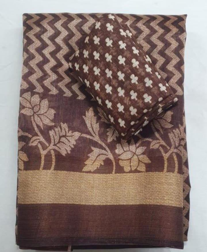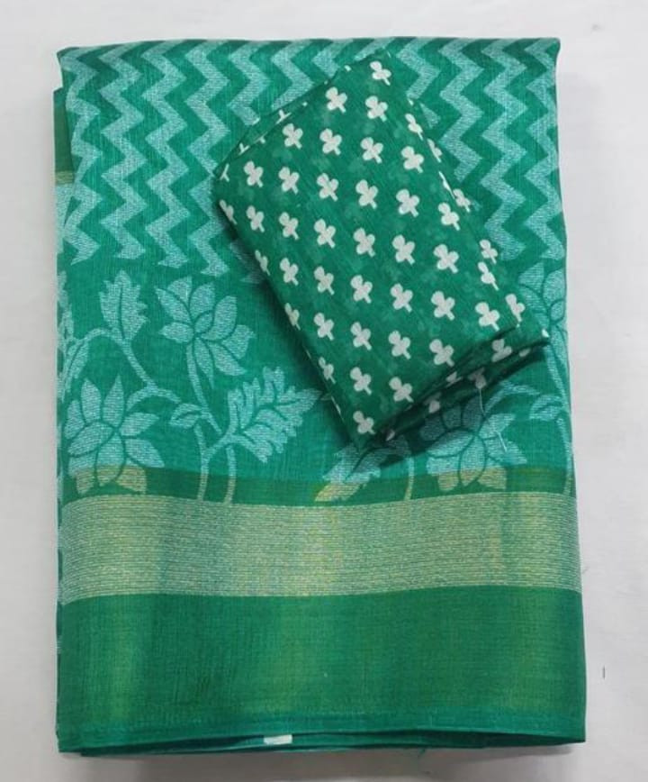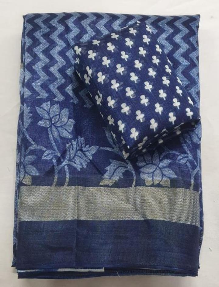 Women Printed Pure Cotton Saree with Blouse