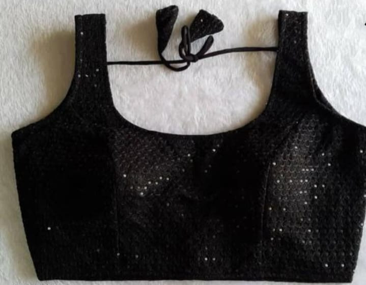 Women's Silk Embroidery Foil Work Sleeveless Readymade Saree Blouse