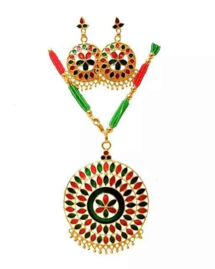This is ultra-modern diagram Japi jewelry set elegant Gold Plated with meenakari assamese jewelry Set for women. This jewelry set is flawlessly desirable for wedding ceremony or birthday party wear. this ordinary jewelry provide proper fee for your money. These are additionally perfect for distinctive birthday items for girls, wife, love valentine items for girlfriend, wedding ceremony presents and anniversary gifts. this is very attarctive format of assamese lifestyle recognised as japi design.