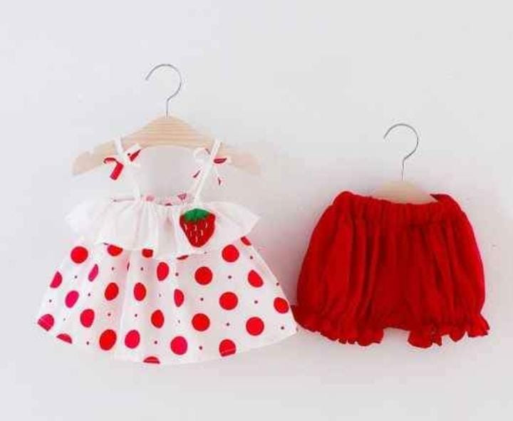 Name: Baby Girl Red Color Cotton Little Pari Top & Bottom Frock Set(Pack Of 1)