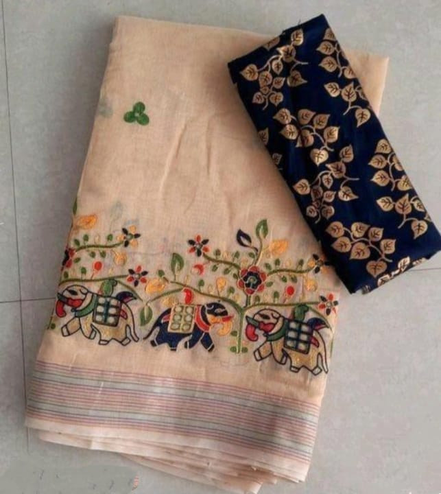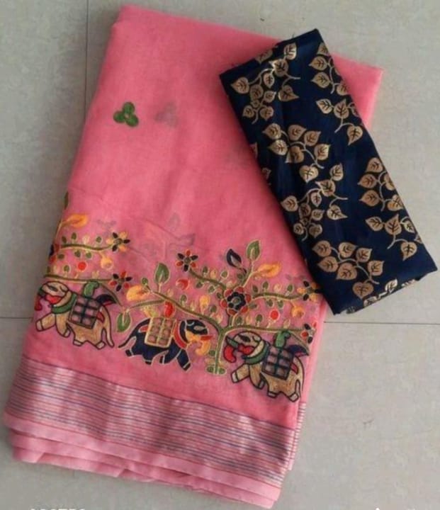 Pattern:cotton blend sareeEmbroidered