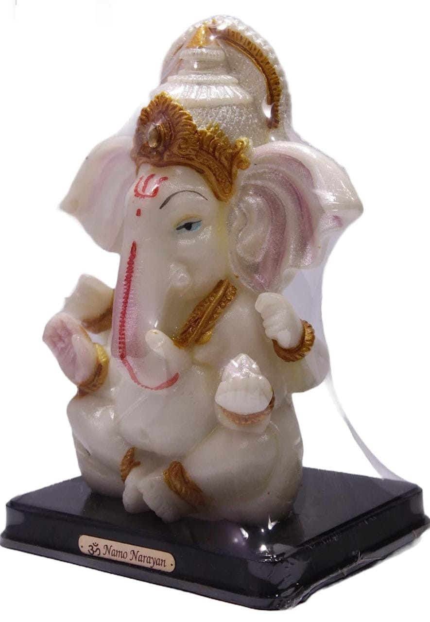 Ganesha has the head of an elephant and a big belly. This statue has four arms, which is common in depictions of Ganesha. He holds his own broken tusk in his lower-right hand and holds a delicacy, which he samples with his trunk, in his lower-left hand. Country Of Origin India.
