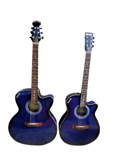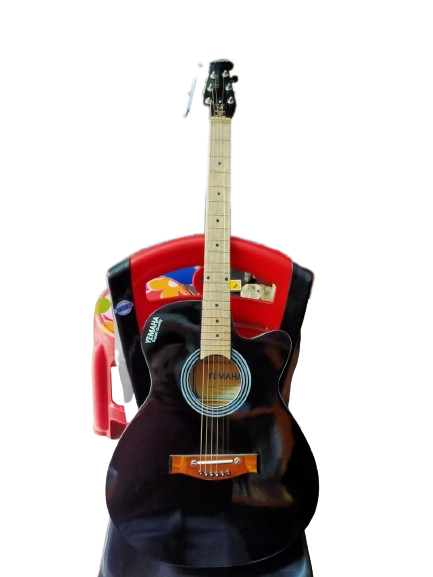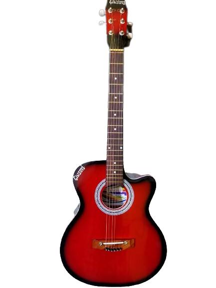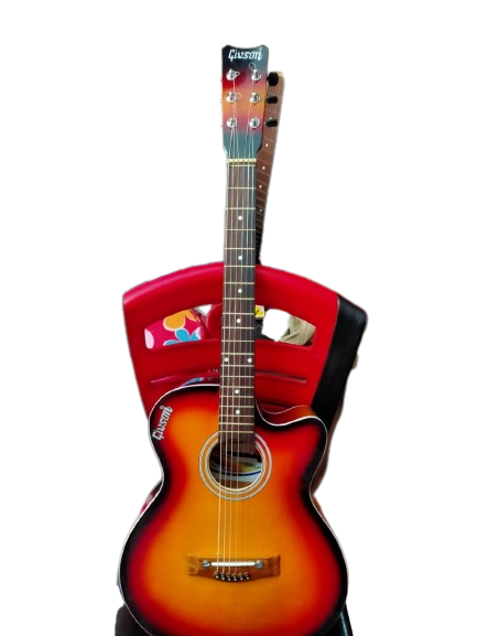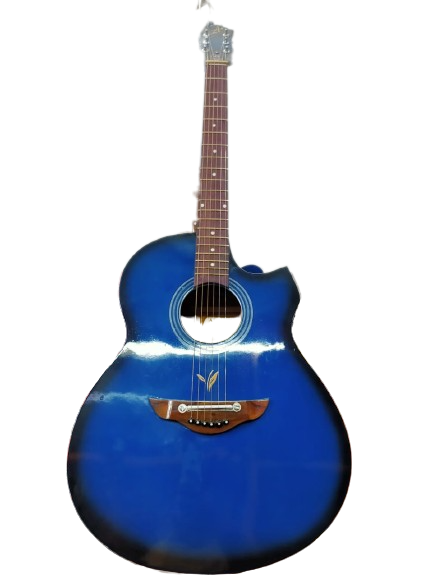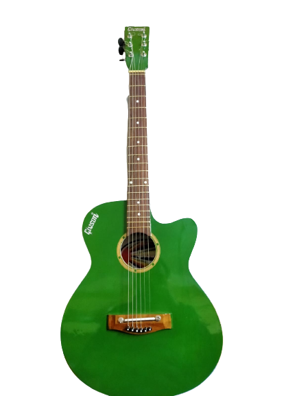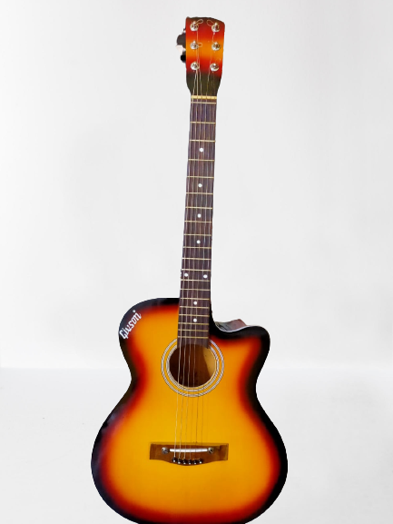 A stringed instrument with a flat body, a long neck with frets, and usually strings that r played with the fingers or with a pic.
