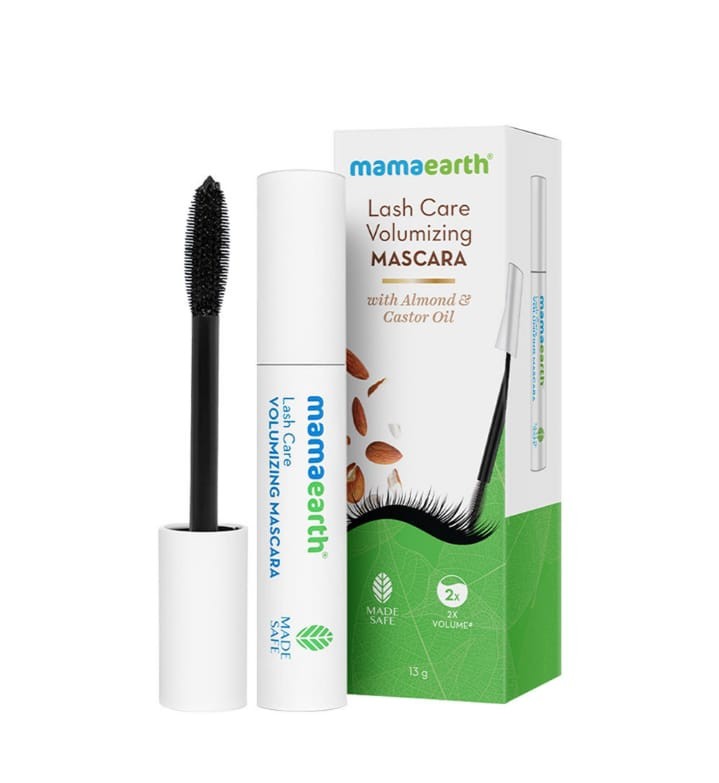 MamaEarth Lash Care Volumizing Mascara With Castor Oil & Almond Oil For 2x instant Volume 13gm. Organic Mascara formulation liquid colour Black. No toxins only natural goodness. Country Of Origin India.