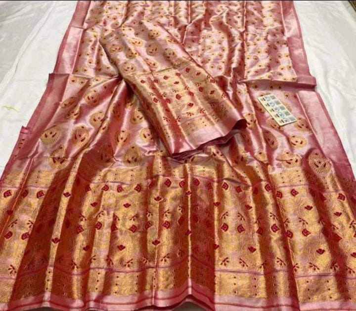 This item is NOT a Saree. It\"s an Assamese Traditional Wear called Mekhela Chador which comes in two separate pieces - 1) Mekhla : the bottom portion, draped from the waist downwards is called the mekhla. 2) Chadar : The top portion of the two-piece dress, called the Sador , is a long length of cloth that has one end tucked into the upper portion of the mekhela and the rest draped over and around the rest of the body. Please follow instructions to extend the life of the fabric. Hand wash separately in cold water for the first time. Do not use bleach, scrub or soak for too long. Actual product colour may slightly vary from the colour on your screen due to resolution.