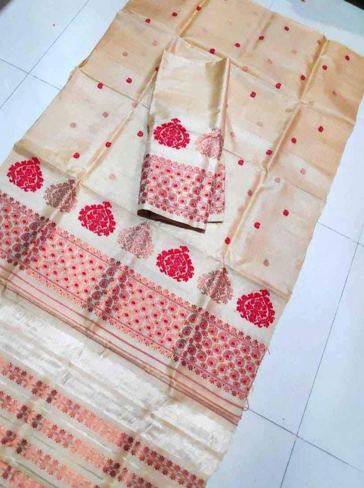 The Pure Toss with Silk Mark Mekhala Sador is a beautiful and high-quality traditional Indian garment made from pure silk. It features intricate designs and patterns that are sure to make you stand out at any event. The original price of this product is $12,900, but with a 41% discount, you can purchase it for a much more affordable price. This is a great deal for anyone looking for a stunning and authentic piece of Indian clothing.