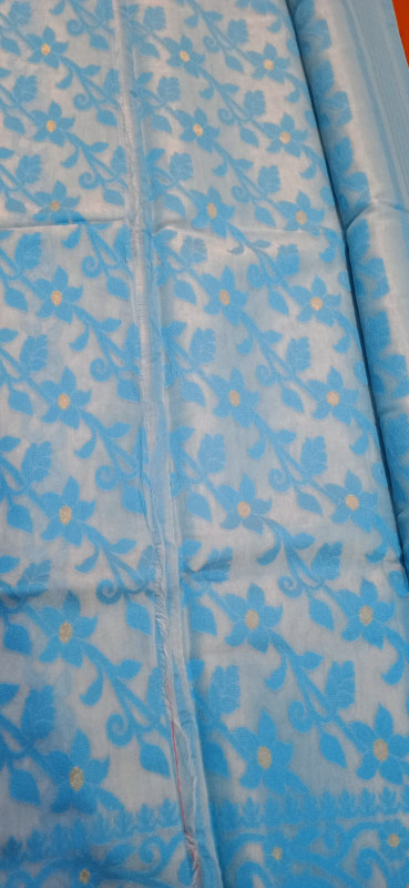 Soft Cotton Tant Saree (blue white)