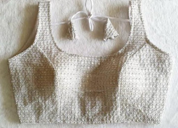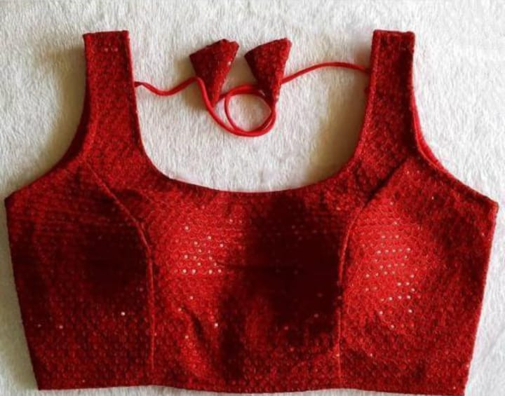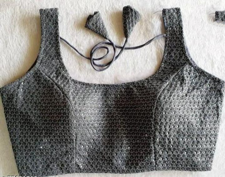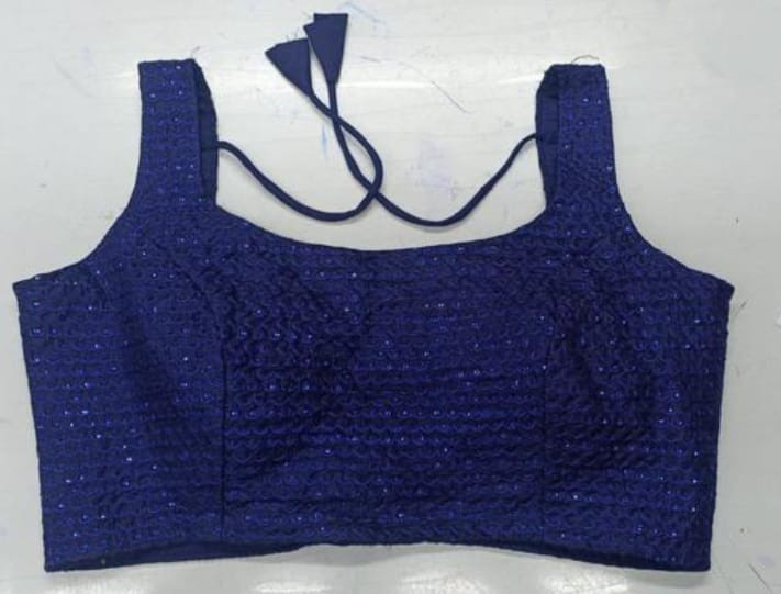 Women's Silk Embroidery Foil Work Sleeveless Readymade Saree Blouse
