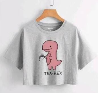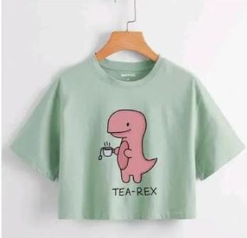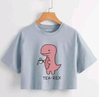 Women's Solid Color Cotton Graphic Tea_Rex Casual Crop T-Shirt(Large)